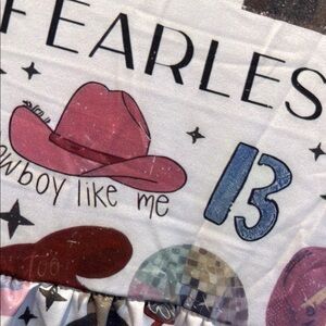 This vibrant kids dress features a playful multicolor graphic of Taylor Swift designs! Perfect for adding a splash of color to any day. Perfect for all the Swifties out there!! Toddler size.