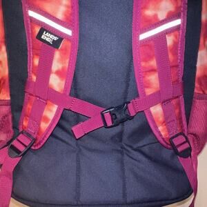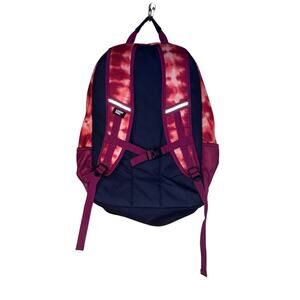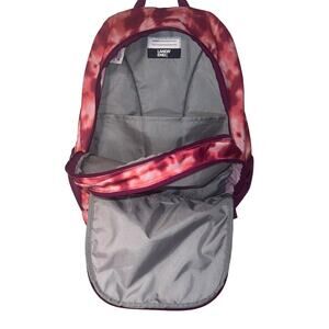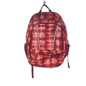 Kids TechPack Extra Large Backpack in the Pale Orchid Burst Tie Dye pattern with reflective strips, adjustable padded shoulder multi compartment double zip main pouch single zip outer pouch, academia,hiking ,camping, vacation backpack