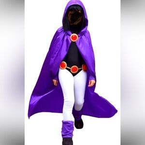 Kids Teen Titans Raven play dress up Halloween costume, comes with cloak jumpsuit belt and shoe covers