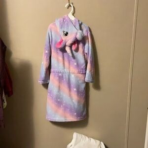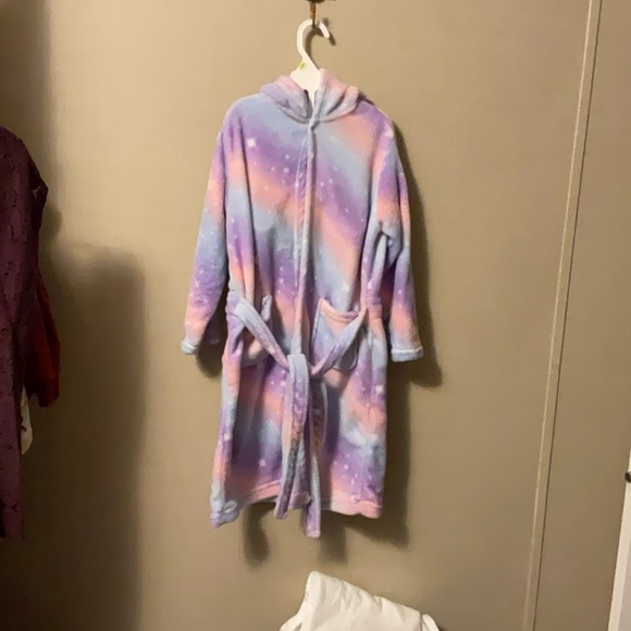 Cozy and colorful tie-dye pajama robe for kids. Features a hood and belt for added comfort.