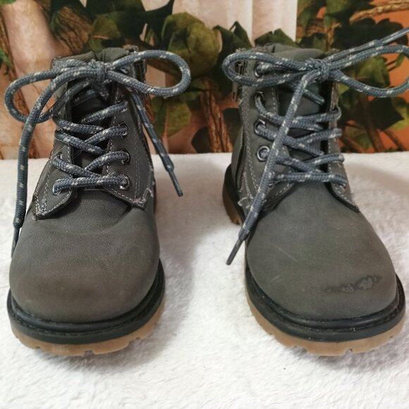 Kids Toddler Sz 9 Gray Combat Boots Side-Zip & Classic Laces