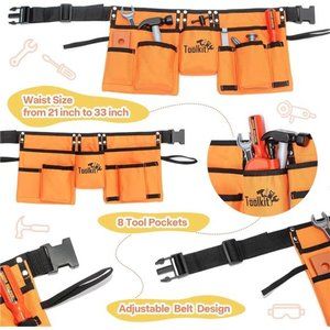 🧿🧑🏭【High-Quality Big Range Adjustable Kids Tool Belt For Easy Storage】Made of high quality Oxford Fabric, our kids tool belt with 8 pockets create plenty of space for tools, adjustable belt is suitable for waist 21 inch to 33 inch. The whole set tools could be placed into this toddler tool belt for easy storage