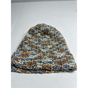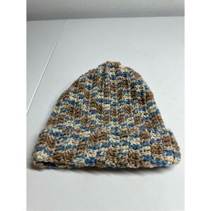 Kids Unisex Handmade Beanie Hat Wool Blend One Size Blue Brown
