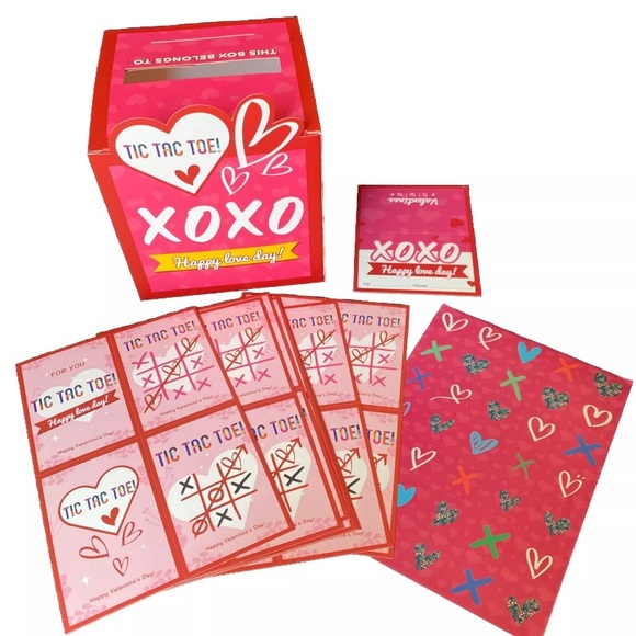 Kids Valentines Day Tic Tac Toe Mailbox And Cards 24 Pack With Stickers