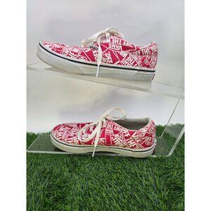 Kids Vans Off The Wall Logo Red & White Canvas Lace-Up Sneakers Youth sz 3.5