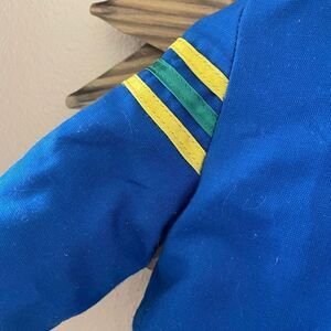 Kids Vintage 80’s Embroidered Frog Blue Hooded Fur lined Zip up Coat 12 mths