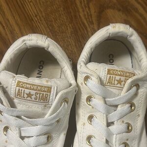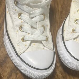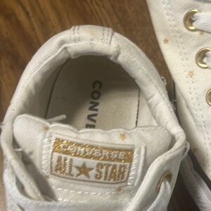 Kids White Converse Gold Stars Sneakers Unisex Size 3 US GOOD Condition