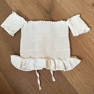 Adorable kids matching set featuring a stylish ruffle design. Perfect for any occasion, this white set offers comfort and charm.