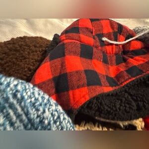 Keep your child warm and stylish with this cozy winter hat collection. Featuring a playful blue hat, a vibrant red checkered design, and a classic gray knit, these hats are perfect for any winter adventure. Grew fit for ages 2-5 ***Bundle items in closet for incredible discounts and bundled shipping!