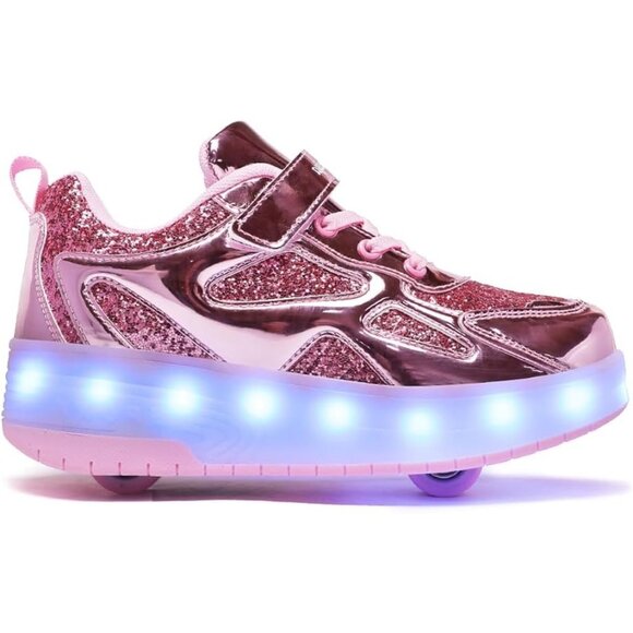 Kids Wi-pink Light-up Roller Shoes With Usb Rechargeable Led Sneakers Shoes