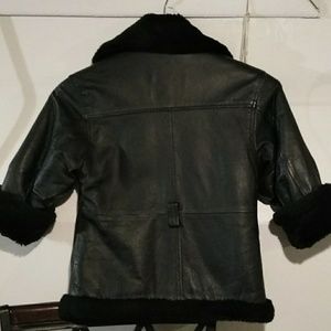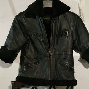 Kids Y2K winter unisex black leather jacket size XS