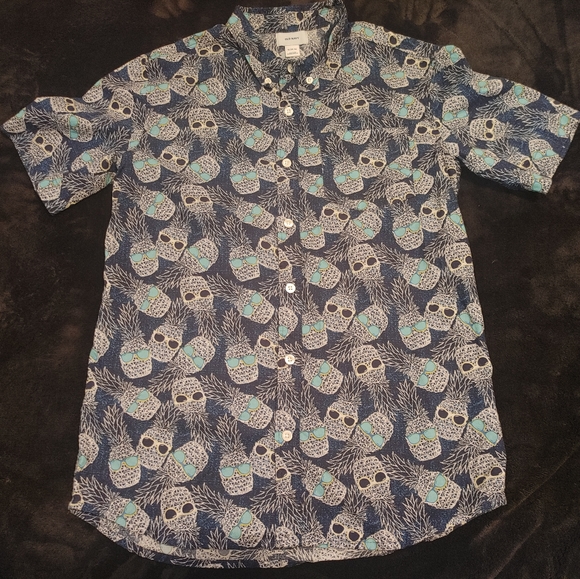 Old Navy kids pineapple with sunglasses theme button down short sleeve shirt.