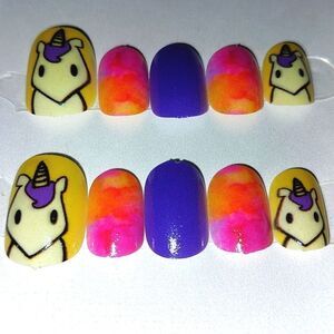Kids custom Unicorn 10pc  press on nails for girls and teens