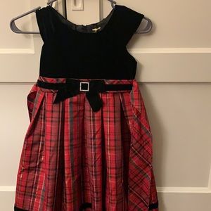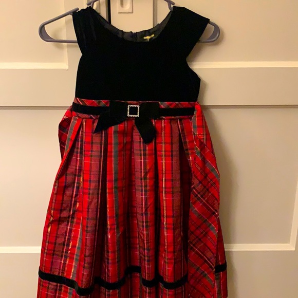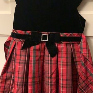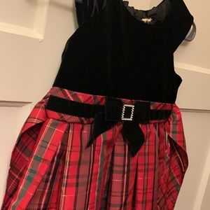 Zip up in the back, bow with diamonds on it. Worn 2 or 3 times. No rips