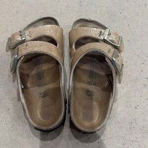 Kids gold and Brown Birkenstock Sandals 28 translates to an 11 1/2 or 12