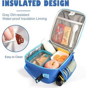 🧿Insulation & Waterproof & Easily Clean - This lunch bag kids is made of insulated material to keep food cold/warm for hours, get fresh food with right temperature. It is made of rip resistant 600D oxford fabric,PEVA linning and the ultra-thick EPE