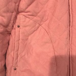 Super cute corduroy jacket that is soft with hearts on the inside. 2 pockets on the corduroy side. Could be reservable too. Size should range from 4-6 years depending on kids side. Zipper had a little wear on it but otherwise in great condition.