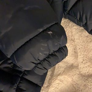 Great winter jacket!!! The jacket is really thick and warm with pockets. The hood is removable.