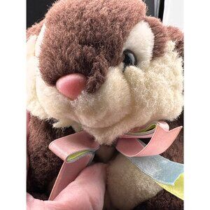 Adorable vintage 1980s plush bunny with embroidered carrots on feet, perfect for Easter. This 7-inch stuffed animal is a nostalgic collectible, great for kids and bunny lovers alike. Soft and cuddly, it adds a charming touch to any plush toy collection. VERY RARE. There’s only one other available online and it is crème color not brown