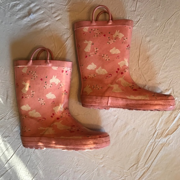 Cute bunny design rain boots size 1 well loved not new -but still cute and functional and deserve a new kiddo :)