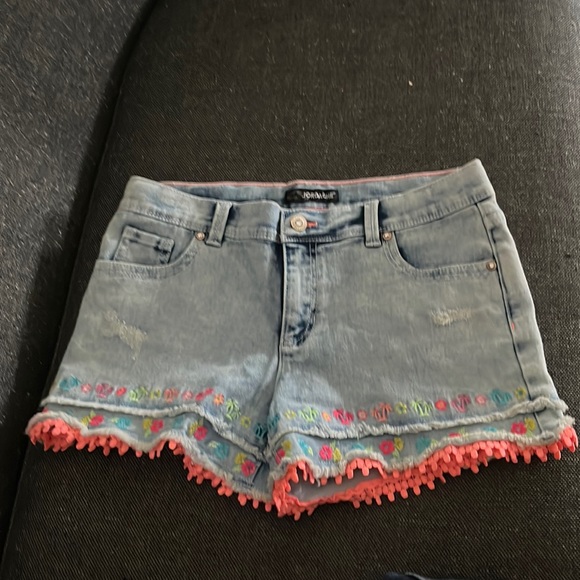 Never worn Jordache kids short, light blue with tropical designs.