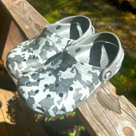 Kids size J 1 Shades of Gray Genuine Classic Camo Crocs EUC