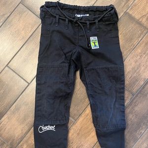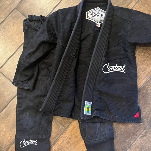 Black w red accents. Awesome gi, great condition. Just doesn’t fit my daughter any more.
