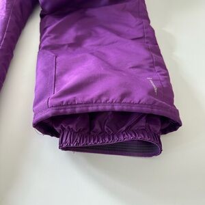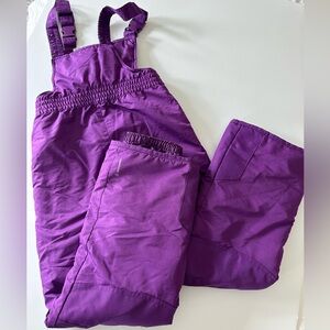 Kids, snow jacket and bibs, size medium 7/8, color, purple brand champion, great condition