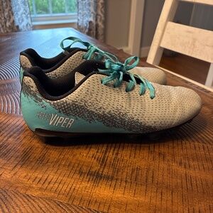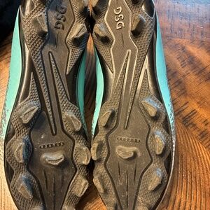 Excellent condition. Teal & gray/silver cleats size 2.5 and black socks with built in shin guards. All excellent condition