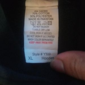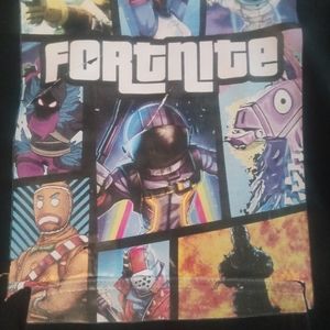 Fortnight Pre-owned kids sweater. The bottom of the picture, peeled off a little. You can see it by the pocket.