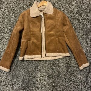 Kids tan Sherpa Lined biker jacket Small