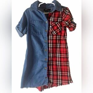 Kids toddler Girls red plaid color block shirt dress with pockets, sizes 5/6. Good condition.
