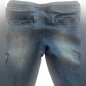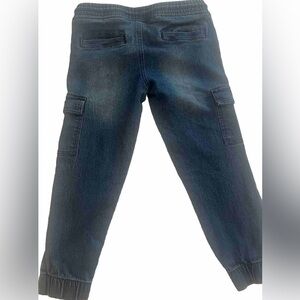 Kids toddler girls size 6x blue cargo jeans with elastic drawstring waistband and elastic ankle bands and back pockets. Stretchy. Like new