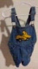 vintage denim shortalls with a construction theme applique