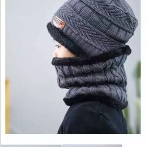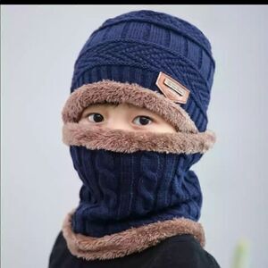 Children winter knitted hats with scarf warm neck warmer with thick fleece lining winter children