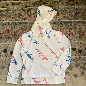 Details: Hooded pullover sporty sweater with adidas logo all over. Soft and smooth material.