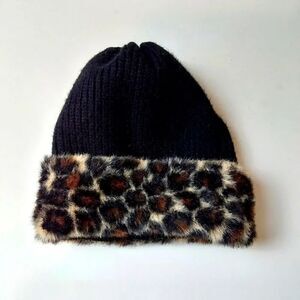 Black with faux Leopard print fur trim