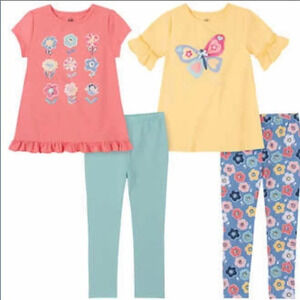 Kid's Headquarters Kids' 4-piece Set, Butterfly Flowers 2 Shirts 2 Leggings 2T