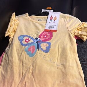Yellow short sleeve tee butterfly graphic on chest and ruffles on sleeves