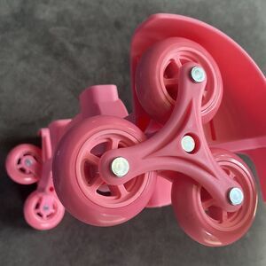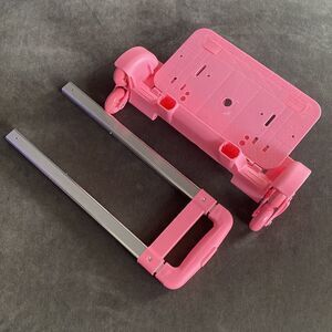 Kids Rolling Pink Wheeled Backpack that comes with a matching Lunchbox & Pencil Case. The trolley that holds the backpack has 6 wheels! The back pack can easily be used either with or without the trolley which makes it great for multiple uses. The trolley handle needs to be attached to the base when bought. This comes as two pieces for easy shipping.