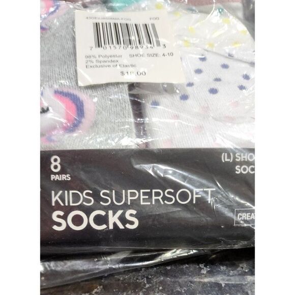 Kids Supersoft 8 Pack Ankle Socks, Large. Shoe size 4 - 10 in Kids. New 8 pairs still in packaging.