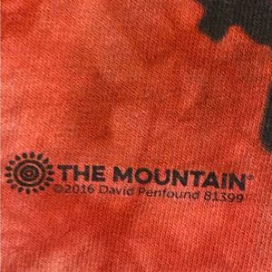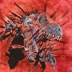 Red based The Mountain T-Shirt with an awesome ferocious Tyrannosaurus Rex graphic front and center.