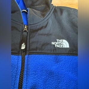 Kids-The North Face Black and Blue Fleece Jacket with Hood-Size Youth Large