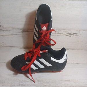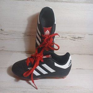 Kids/children's Adidas Classic Black And White Stripe With Red Accent Size 10 1/2.Pet-free smoke-free home please look at all photos for images of the actual product and please ask any questions before purchasing if measurements are available there will be pictures with them as well ask any question before you purchase please as the item is not returnable please remember that lighting from your home to my home May slightly vary causing a difference in color