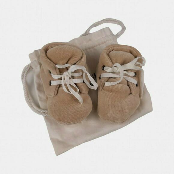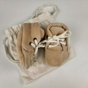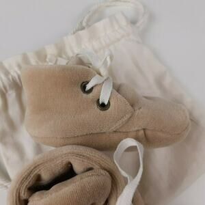 Kidwild tan velour booties, size 3-6mos. EUC #kidwild #velour #booties #babyshoes