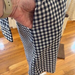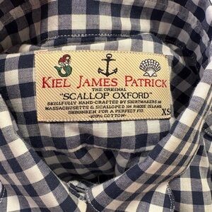 Kiel James Patrick Scalloped Oxford blue/white checkered shirt dress. Size XS