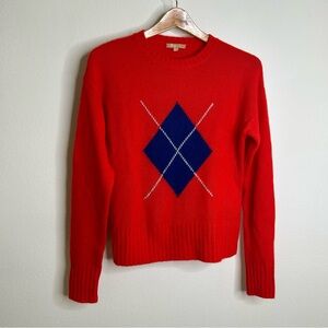 Kier & J 100% Cashmere Bright Red Argyle Pullover Sweater Size Small