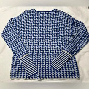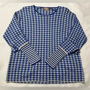 Kier + J 100% Cashmere Sweater | Blue and White Houndsthooth print | Size xl