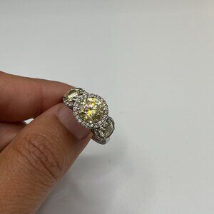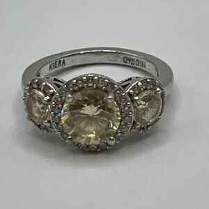 keywords: sterling silver ring, kiera jewelry, yellow gemstone ring, three-stone ring, halo design ring, women's silver ring, gemstone jewelry, elegant ring, silver band ring, yellow stone ring, halo ring design, fine jewelry, 925 silver ring