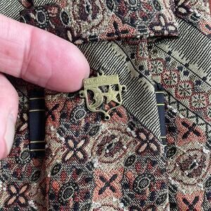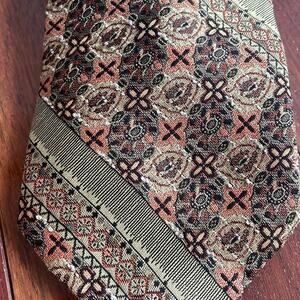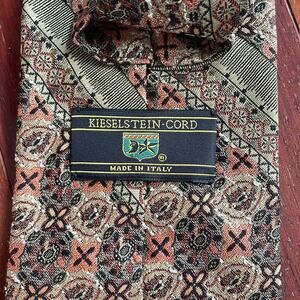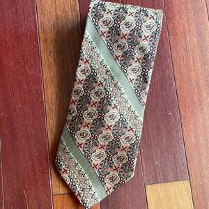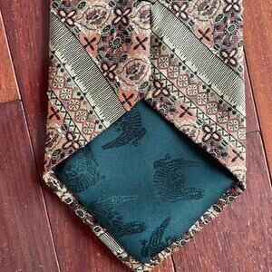 Kieselstein-Cord 100% Silk Tie Italian 60”x3.75 Green Tan Victorian Regal Pin